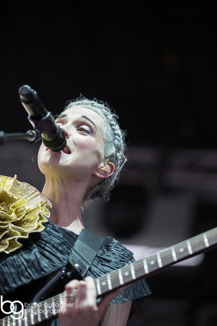 First of all, it sounded great. This was one of the sets where I didn’t recall hearing any feedback from the speakers. It was loud, and you could hear all the instruments, the backup singers, and Merrill Garbus singing with so much energy. At one point, her two main backup singers came out to the front of the stage without microphones and just screamed SO LOUD. Their mouths were opened so wide, and they just emitted this gigantic sound all together. It sounded fantastic.