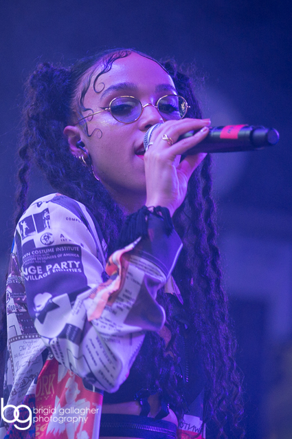 She came out in this outfit that looked like she stepped out of a Tumblr fever dream. There was all this smoke, and she sauntered out onto the stage, teasing the crowd by pretending like she was about to sing, and then didn’t. She got the crowd’s attention immediately—as soon as one guy in the front saw her peek out from backstage, he pointed, and everyone just started cheering. She whispered the entire first song, which made everyone stop and listen up. Tahliah Barnett (that’s FKA Twigs real name) is a trained dancer, and her moves were sick. She turned her tiny body into a big force of twitchy, beautiful movements and utilized the entire stage.