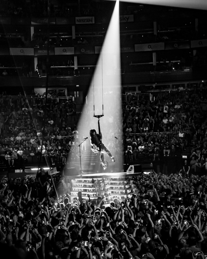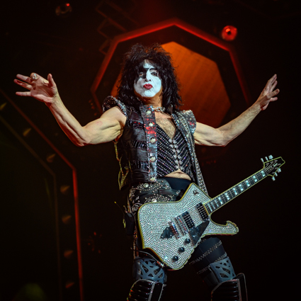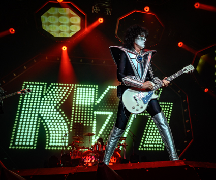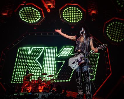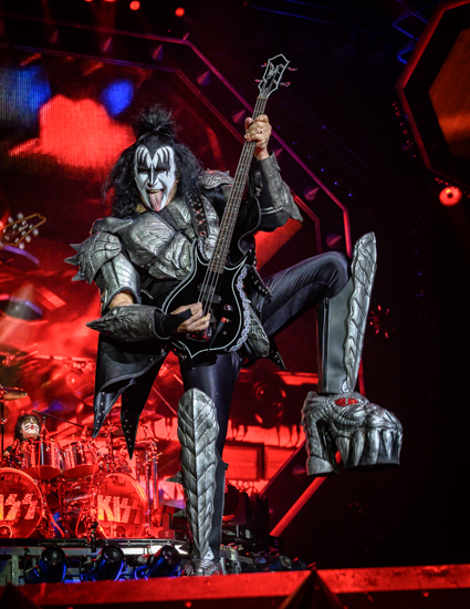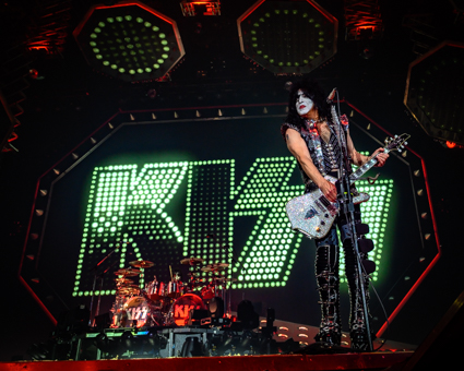 Opening up the evening with the KISS classic “Detroit Rock City the band descended from a steel platform gliding through an enormous cloud of smoke from the opening fireworks. Within seconds Gene and Paul were front and center interacting with the crowd (and the photographers) in classic form. These guys don’t miss a beat and they still have the energy of a rock ‘n’ roller half their age.