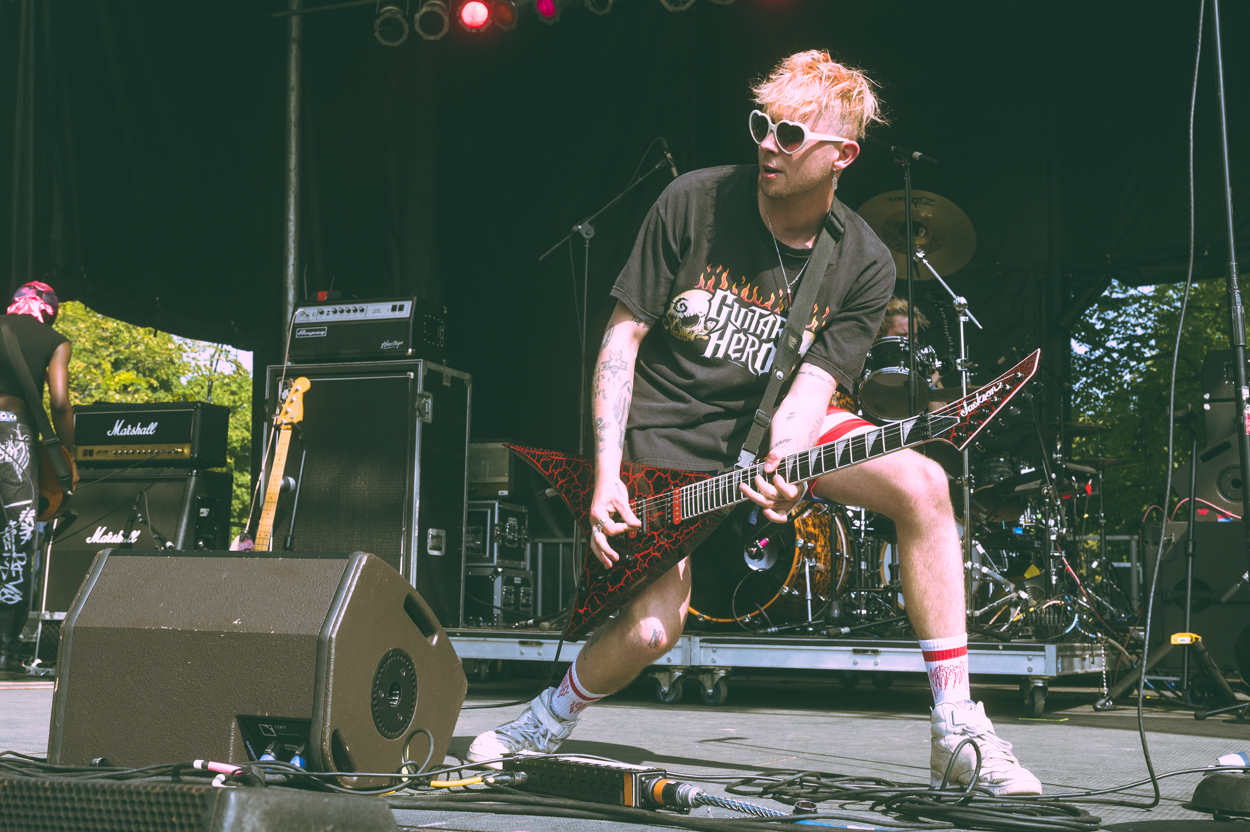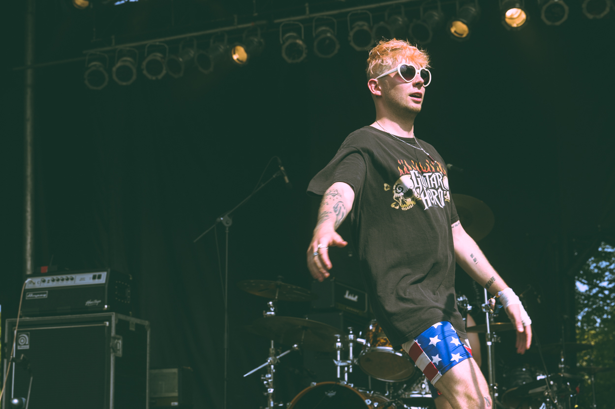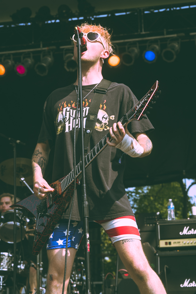 It is hot in Chicago. When I think about a festival in September, I think sweater weather and dress as such. As I walk from my car I realize this was not wise. It feels like we’re in the middle of the summer, and the crowds I see around the stages reflect this too. It’s shaping up to be a hot and sweaty Riot Fest this year.