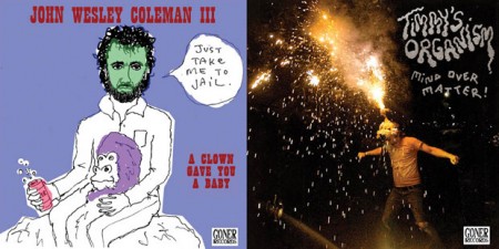 1.Timmy’s Organism / John Wesley Coleman – split single There’s a million ways to go crazy, which is one reason it’s so depressing to hear so many bands that sound alike. Get a little bit outside yourself, folks! Two fellows with no problem getting outside themselves are JOHN WESLEY COLEMAN and TIMMY VULGAR. Wesley’s been bashing out demented pop songs buried in fuzz and blather for about a decade—here he provides a track that might remind you of the Buzzcocks pretending to be a drunk Bruce Springsteen trying to play a Nick Lowe song that he hasn’t written yet. Guaranteed to be stuck in your hair for a week.