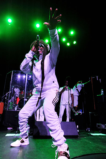The sold-out Staples Center was buzzing with excitement from the crowd that had lined up hours before the start of the show. Many of the young devoted fans known as the “skeleton clique” were decked out in Bandito-theamed camouflage outfits highlighted with strips of yellow and the band’s signature red and black beanies and bandanas.