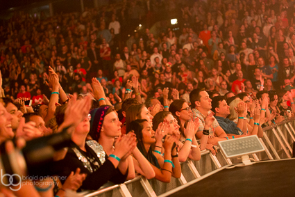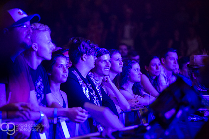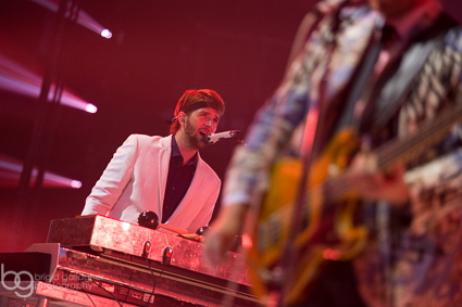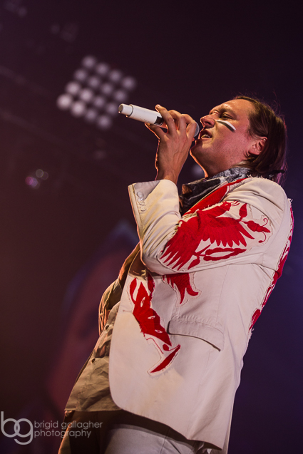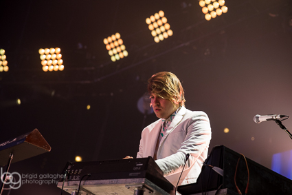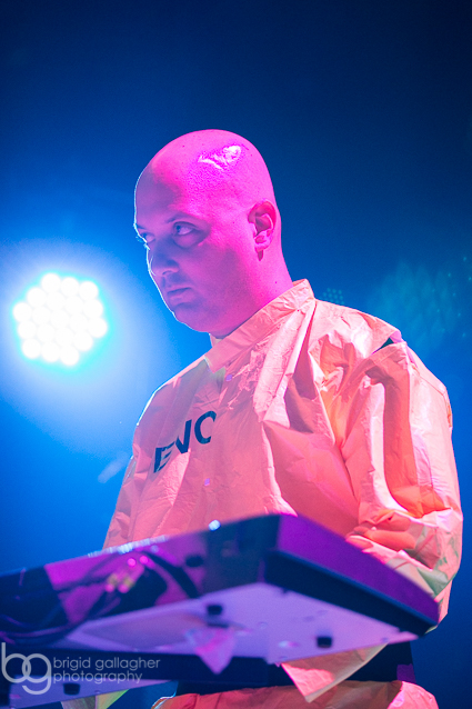Devo opened the evening with a solid set highlighting some of their post-punk/synthpop hits as well as their trademark de-evolution performance antics. Dan Deacon, whose stage was set up in the middle of the arena, followed by entertaining the crowd with his unique experimental electronic music. As is his custom, he curated an interactive dance party by calling upon members of the crowd to initiate audience participation. The results were entertaining, to say the least.