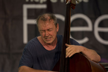 The band featured pianist Alexander Hawkins, veteran bassist John Edwards (pictured below) and saxophonist Shabaka Hutchings.