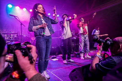 There was a lot to keep the crowd occupied before the music got started. Vans was handing out t-shirts, totes, and limited edition grand opening posters. Several folks couldn’t wait and they put their shirt on right away. A DJ played favorites as a line formed outside of the photo booth. Eventually the mass of people parted and a circle formed as several dancers took turns showing their best breakdancing moves.