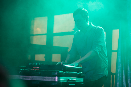 The audience was ready and in good spirits by the time Future Islands hit their first note. They opened with songs off their upcoming album and the crowd ate it up. Lead singer, Sam Herring uses every inch and level of the stage. He lunges back and forth, crouches down to look the photo-pit in the eye, he holds hands with audience members. Every song becomes a dramatic performance as he punches his chest passionately, grabs at his heart, slaps his face. He tells a story in his range of vocals—a simple phrase turns into a yell and rises to a roar.
