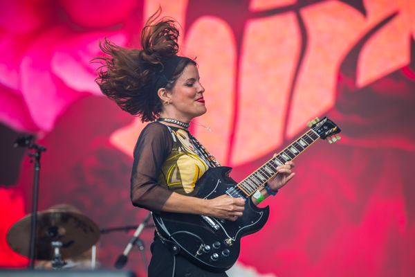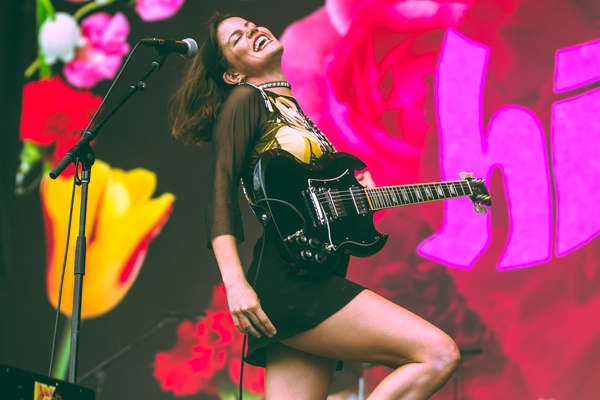 2:32PM: Hinds continues to be one of Madrid’s finest imports. They’re currently covering The Clash’s “Spanish Bombs,” and a few songs ago they plucked a young female fan from the crowd to play bass with them. They deserve a better time slot!