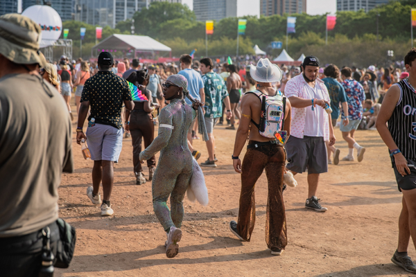 7:07 PM Megan Thee Stallion has thee biggest gathering of humans I’ve seen yet. There’s nowhere to move, so I nestle myself against a fence to take in her set and do some people-watching. Two girls ferociously make out directly in front of me; a boyfriend tries to feed his stumbling girlfriend water; a girl cries—she’s lost her friends in the crowd.