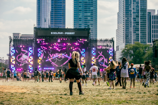 3:10 PM So far Lolla fashion has remained pretty consistent over the last few years: NBA jerseys, jorts that cover nothing, bikini tops, spandex, and Hawaiian shirts. This year’s additions to the list include pigtails, George Michael-esque cross earrings, glitter (so much), and these free Solana sunglasses that continue to get passed out to the masses.