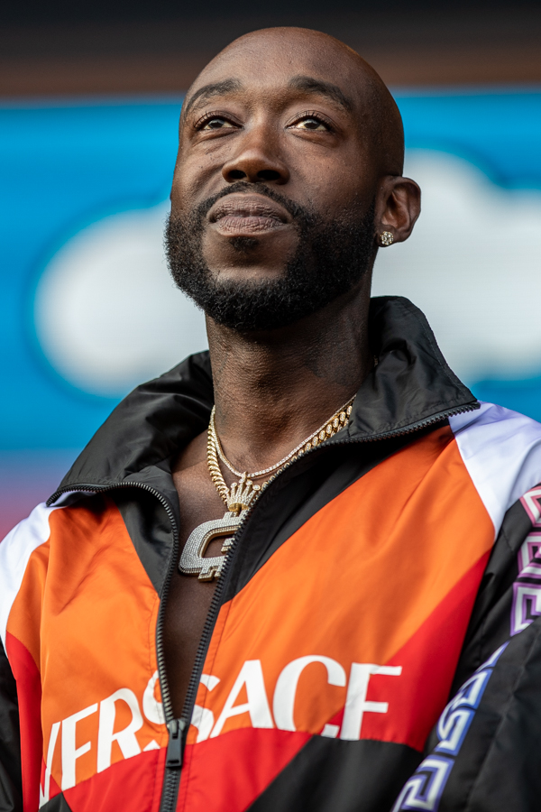 6:10 PM Freddie is in the crowd free-styling as the sun sets. His fans mosh and occasionally break out in “Fuck Covid!” chants led by the masterful rapper.