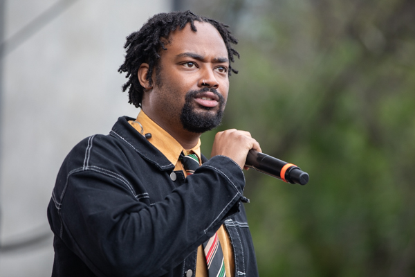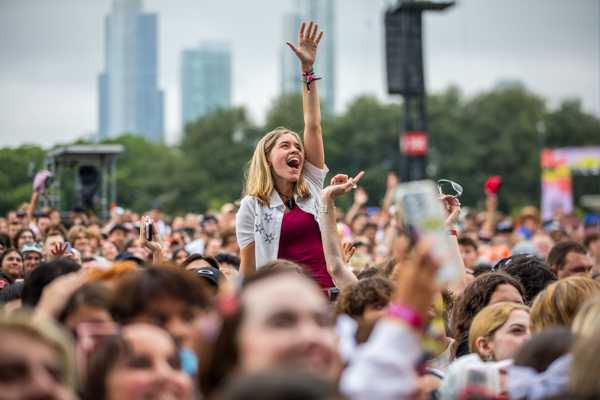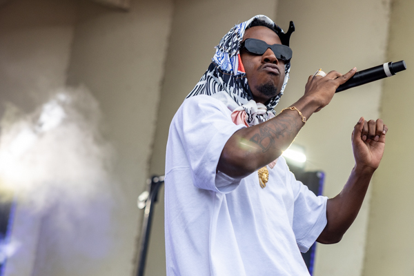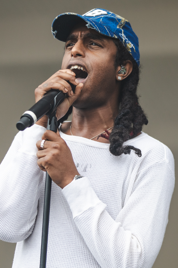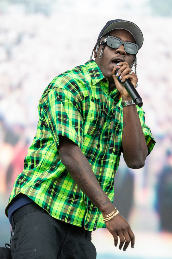 2:14PM: We’ve got clouds and some more rain today but Bakar and band are doing their best to lift the soggy spirits of Lollapaloozans. The British singer pulls a crowd early in the day, despite the weather.