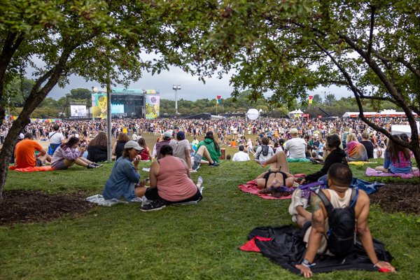5:33PM: After four days of observation, I’ve made a list of Lolla ’23 fashion trends: bubble braids, cowboy hats with fringe, long skirts, jerseys, of course, Barbie-themed apparel, heart-shaped sunglasses, facial art/bedazzlement, bucket hats, animal ears, plant sprouts on hats.