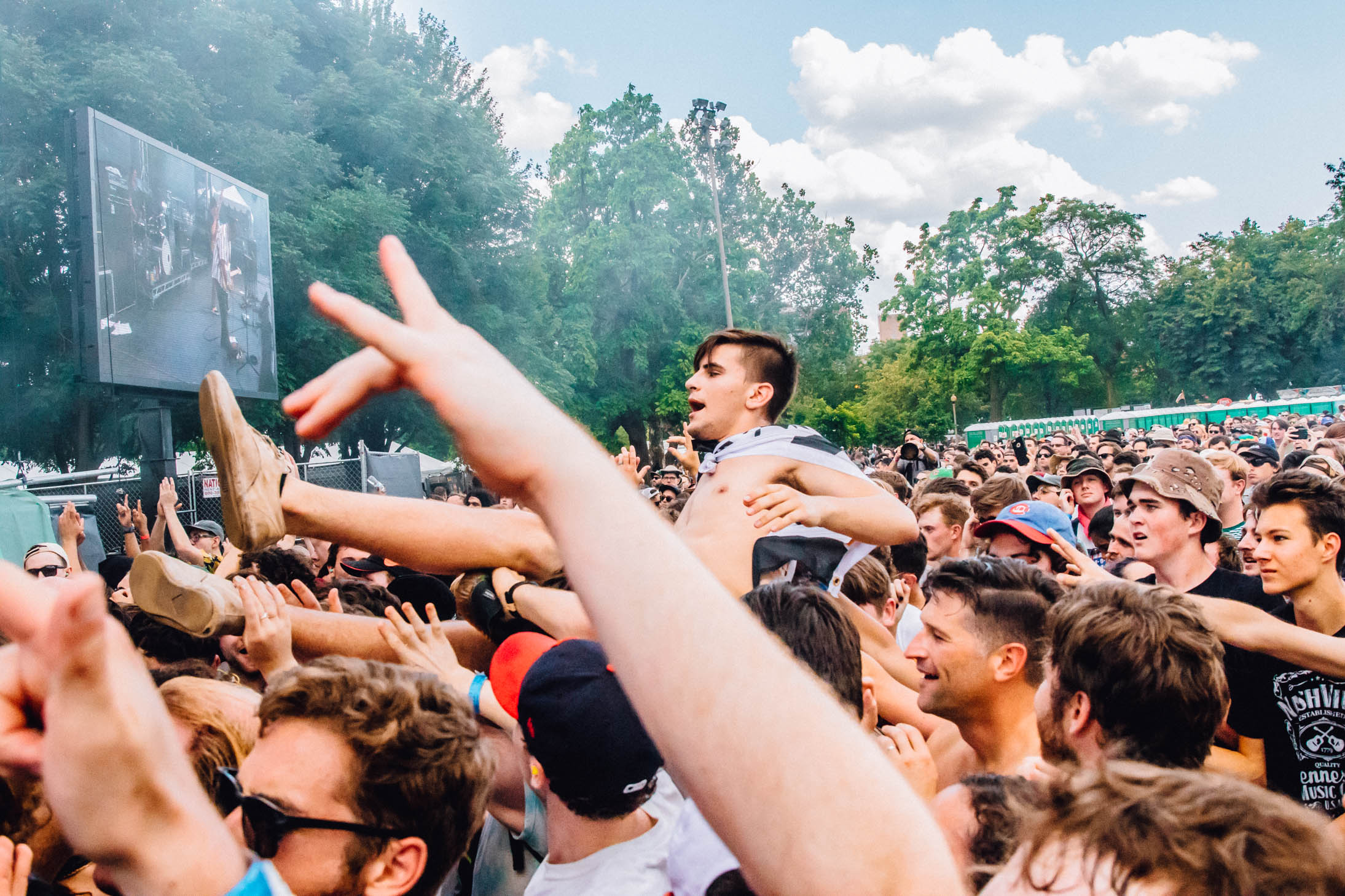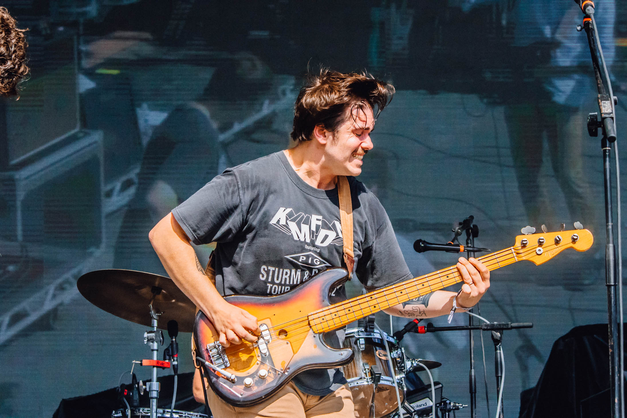 Parquet Courts had one of the most intense and energetic crowds of the weekend. Bassist Sean Yeaton continuously made amazing faces and poses as their lead singer Austin Brown growled into the mic. During their set, fans were moshing and crowd surfing while taking photos on disposable cameras and throwing their gym shoes in the air. As photographers took a break before the next set, I heard Brown say “well folks, looks like Mother Nature is going to cut our set short.” No one knew quite what was going on, until a delightful British voice came on over the speakers, letting us know that big storms were coming. Somehow, a few of us made it to a bar nearby before it began pouring, but we were bummed that both Kurt Vile and Amber Mark’s sets were cut from Saturday.