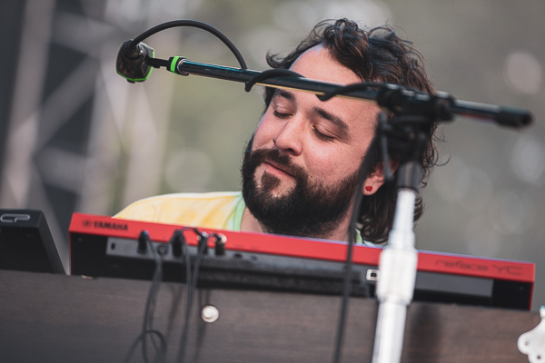 6:10PM: My record player has spun a ton of Khruangbin in the last couple years, so I guess it’s no surprise that I’m digging everything about their set. Props to Pitchfork for scheduling them at sunset at the Red Stage. The sun rays are peaking through from the side of the stage, perfectly accentuating the band’s funky, psychedelic sound.