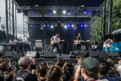 4:20pm: There is a decent pot haze clouding the crowd at the Blue Stage as locals Whitney kick off their set. Formed from the ashes of Smith Westerns, their debut album, Light Upon the Lake is, in my opinion, one of 2016’s best. Keyboardist Malcolm Brown is wearing a homemade shirt—a heart surrounding the French flag—to honor the recent and horrific tragedies in Nice.