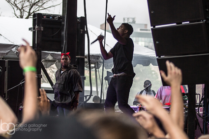 7:12pm: Mick Jenkins is impressing. While rushing to catch the end of his set, I overhear groups of people talking about him. “Who is this?” “I dig this!” “He’s really good.” They’re right, as he’s currently conducting the entire crowd, all of whom are ferociously waving their middle fingers in the air.