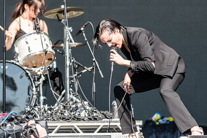 5:04pm: “DON’T LET THE FUCKER GET YOU DOWN,” Jehnny Beth is screaming as Savages continue to rage on. It’s the set I’ve watched the most of and danced the hardest to so far this weekend.