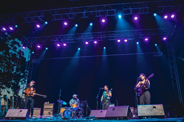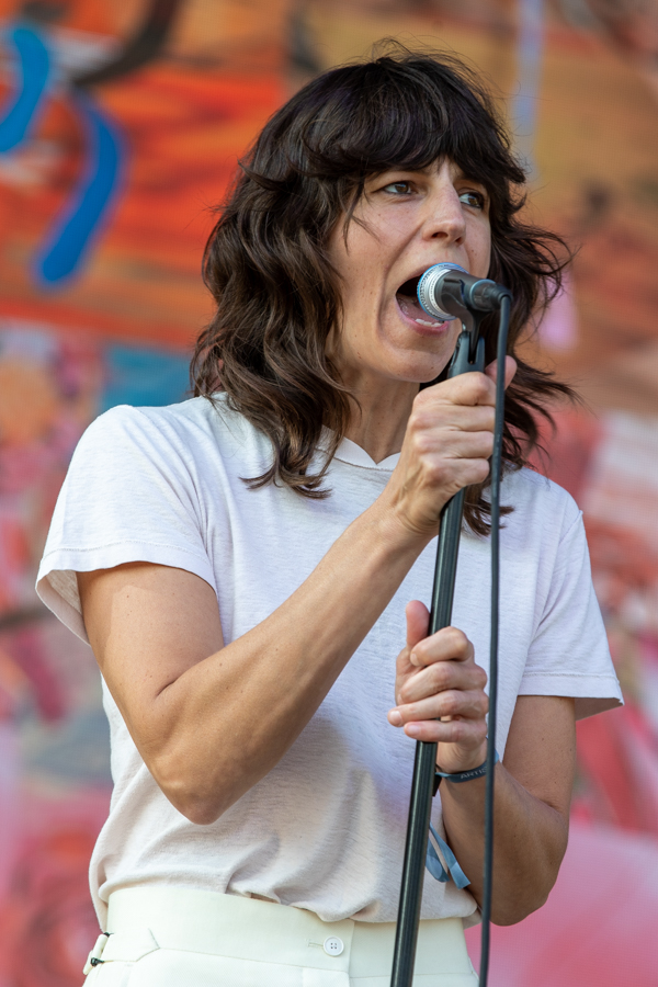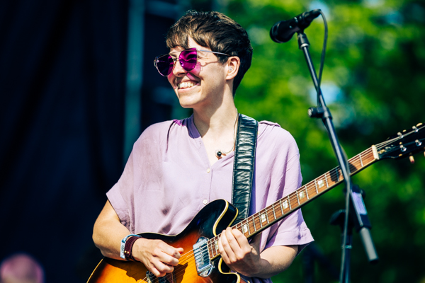 3:43 PM: Singer Frances Quinlan’s voice shines during Hop Along’s set at the Red Stage. The sun soaked crowd is happily dancing along.