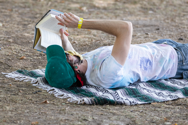 4:08 PM: I’m not used to seeing people reading at festivals, but at Pitchfork I expect it. Right off the bat, I see several readers.