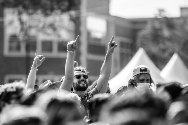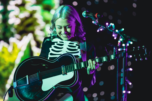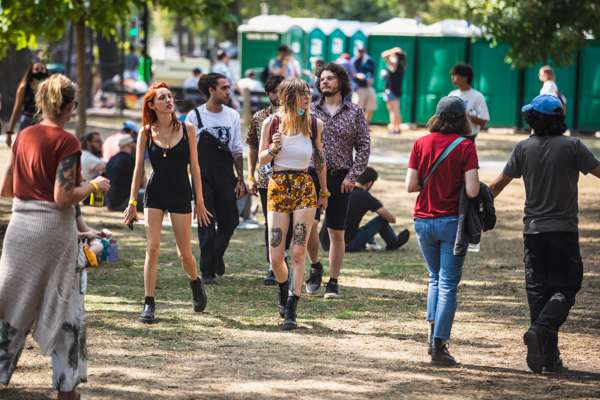 8:47 PM: As she takes the stage, Phoebe Bridgers is stunned at the Great Lake of a crowd reaching for her. I watch her take the moment in through my lens. It’s been a phenomenal couple years for her, the release of her 2020 album Punisher to critical acclaim being one of the reasons. And now here she is: an indie darling headlining the country’s premiere indie music fest.