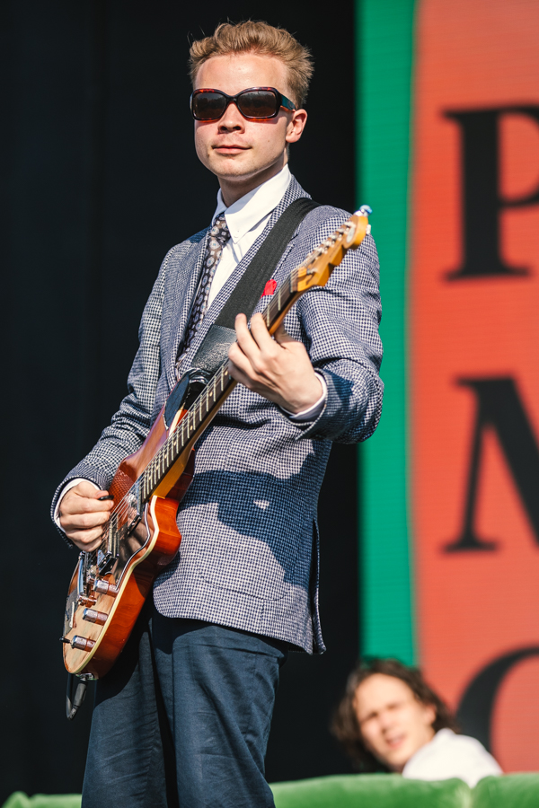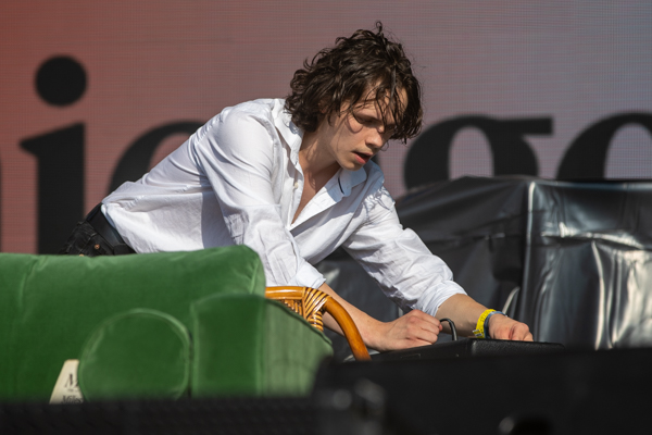 5:10 PM: black midi has stolen Friday. They arrived with their own props—a green velvet couch, a clothing rack filled with options, a copy of Miles Davis’ autobiography—and leave with everyone’s respect after a scintillating set. Their music is serious but their presence is playful, making for a perfect balance.