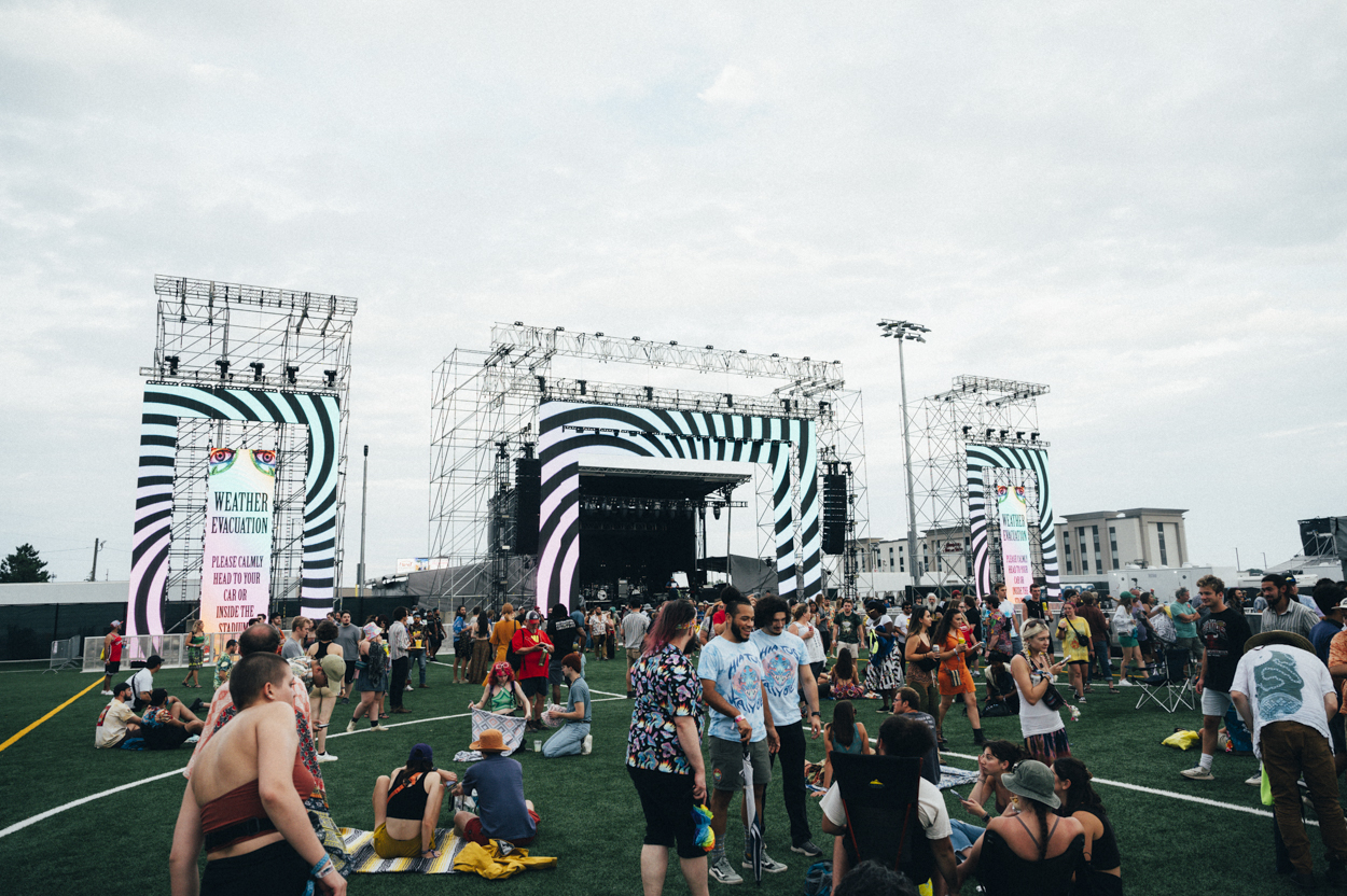 I enter the gates and shortly after it’s announced that the grounds must evacuate as the winds are too high. The music has been put on pause until further notice. After a couple of hours, we get the all clear to come back in and proceed with the schedule as it was originally posted. However, The Canopy stage suffered some damage due to the winds, so they keep this closed while they work on it.