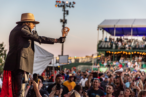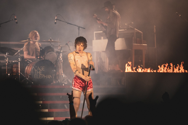 Cage the Elephant was up next and exceeded their reputation as electric performers. Siblings Matt and Brad Shultz do most of the work—both animated and captivating in their own ways. But the true stage force is Matt, who is most likely the love child of Iggy Pop and Mick Jagger. He’s exhilarating to watch—from his leaps and high kicks to the way he slowly de-masks and disrobes—from his messages (“We’re going on a journey of love—to love ourselves for who we are and where we are”) to his stage dives. The real show-stopping moment came at their finale, when Matt decided to crowd surf from the stage all the way back to the sound board. Not done, he climbed to the top of the lighting rig (it was at least 2-3 stories high), waved to the crowd, and climbed back down. Wow.