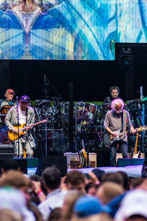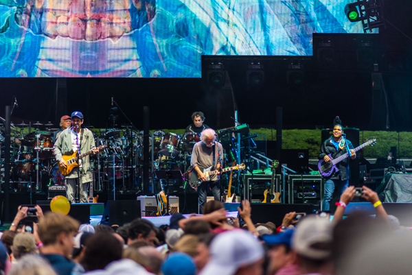 Following a brief break, Dead & Company started out their final set with “Spanish Jam” and played through “Scarlet Begonias,” “New Speedway Boogie,” Help On The Way,” “Slipknot,” and “Franklin’s Tower.” Burbridge, Hart, and Kreutzmann joined together to perform “Drums / Space,” which, paired with their light setup, was stunning and really revved up the crowd. The rest of the band rejoined and they played “The Other One,” “Standing On The Moon,” and “Sunshine Daydream.” After the crowd chanted for more, they came back on stage to play “Ripple” and “One More Saturday Night” for their encore.