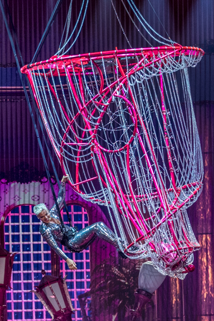 When P!nk began the show dangling, flipping, and twirling from a chandelier all while belting “Get the Party Started,” I wondered how she could possibly top her opener. But, of course, she did. P!nk has never been one to shy away from challenges, especially in regard to her live shows.