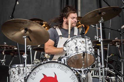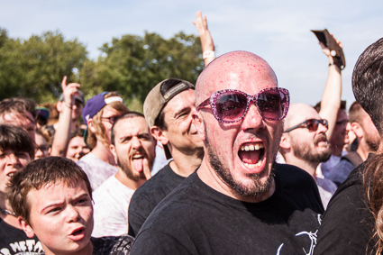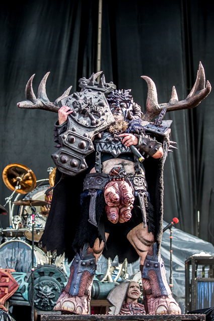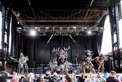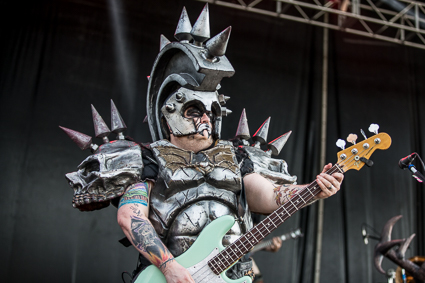 3:02pm: Twenty minutes into GWAR’s set and Obama’s already been beheaded and Hillary Clinton has out-dueled Donald Trump in a battle to the death. That was until her boobs were ripped off by GWAR’s current frontman, Blöthar. Fake blood is being splattered everywhere—some fans are literally soaked in it—and will let it dry and wear it proudly for the remainder of the day.