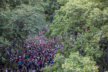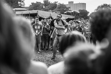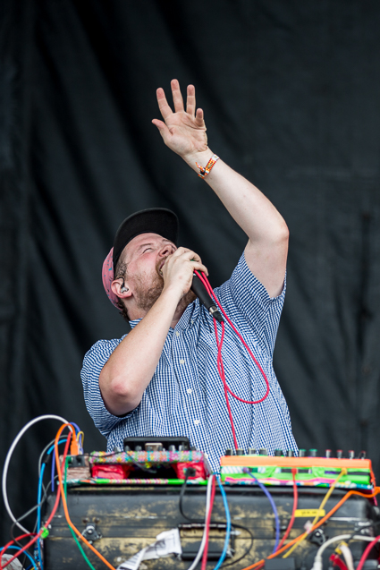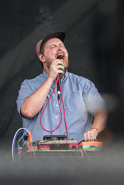 1:51pm: “I don’t know why I’m starting with a bit…” Dan Deacon kicks off his set with humor followed by his trademark curated dance party. “Dance as if the media actually covers the pipeline crisis,” he jokes and the crowd explodes into wiggles, hops, and gyrations.