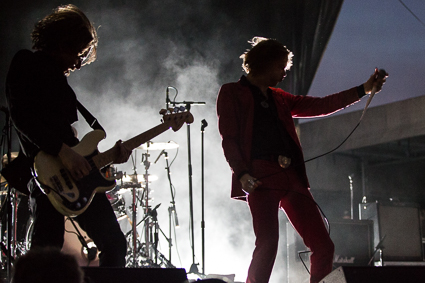 7:25pm: Sweden’s Refused is putting on the set of the day so far. They have so much energy it’s ridiculous. There are high kicks and jumps and twirls every other minute. It’s awesome.