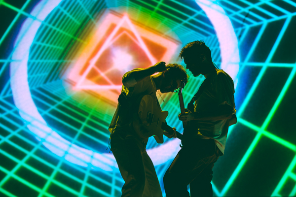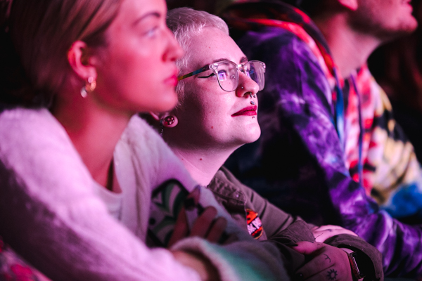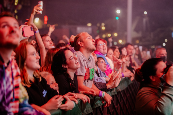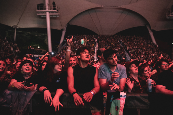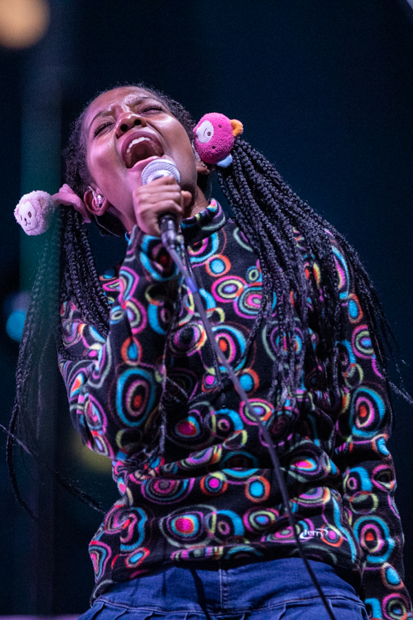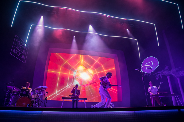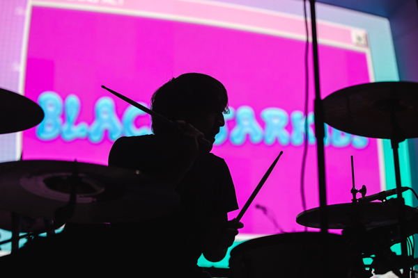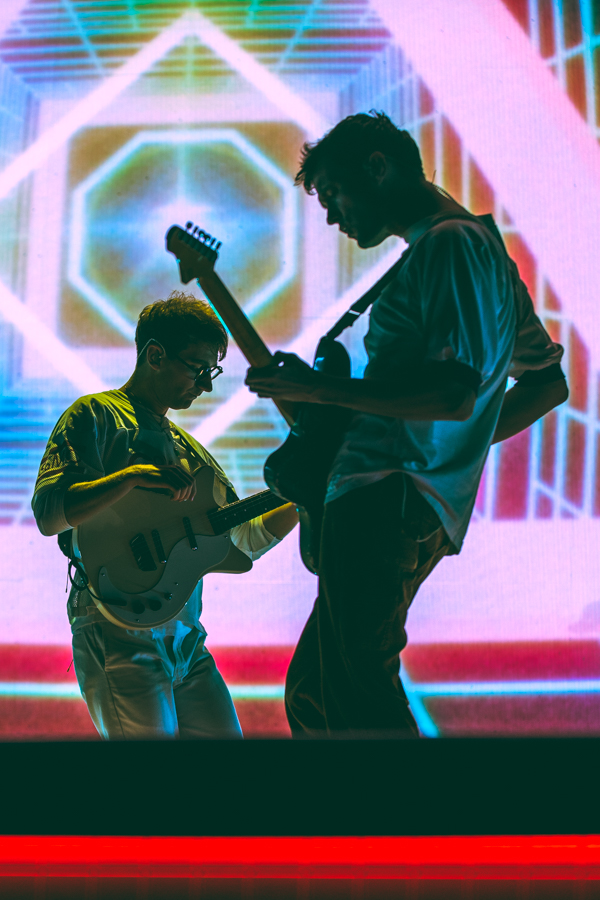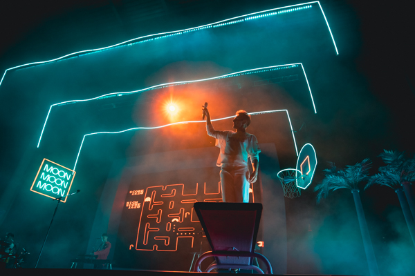 The vision of their 2020 album, Dreamland, was fully realized on stage thanks to the technicolor lighting and stage design, complete with vintage computer graphics, a basketball hoop, a swimming pool diving board, and of course a pineapple (a trademark of the band since their 2016 song, “Pork Soda”). Up-and-comers Blackstarkids kicked off the night with their nostalgia-filled pop tunes. The Kansas City band’s debut album, Puppies Forever, is due out this fall.