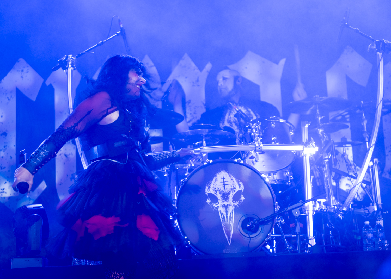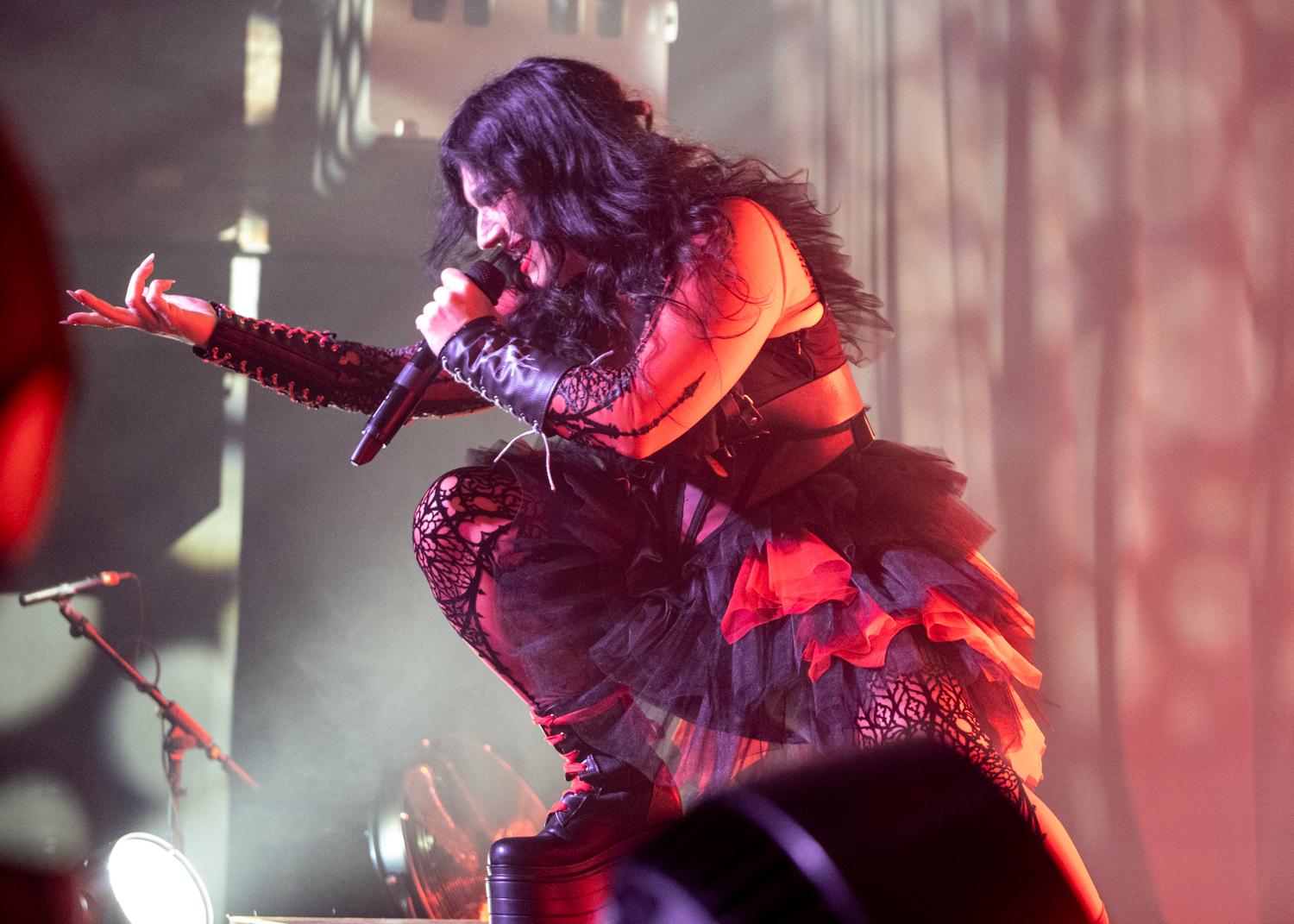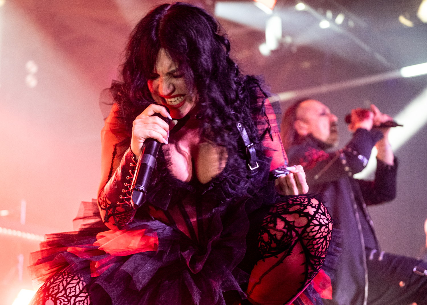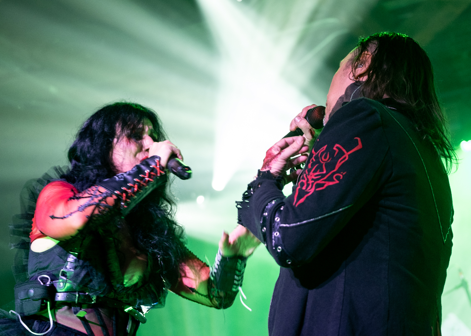 Opening with “Layers of Time,” they didn’t ease in; they hit. Scabbia and Andrea Ferro moved like counterweights. Her voice cutting clean and soaring, his grounding everything in grit. Older tracks like “Heaven’s a Lie XX” and “Swamped XX” landed like muscle memory, while newer cuts (“Oxygen,” “In Nomine Patris”) leaned heavier, colder, more deliberate.