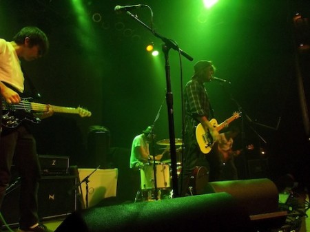 They bounced between moments of frenzied angst, to sparse orchestration, to a bass that cut into the silence. The lighting was perfect for the band, a dark ether seeming to twist about the band members and pour forth from the stage. Trance-like, the drummer went on, accelerating. The washy guitars, the pedal craze worked the crowd over.