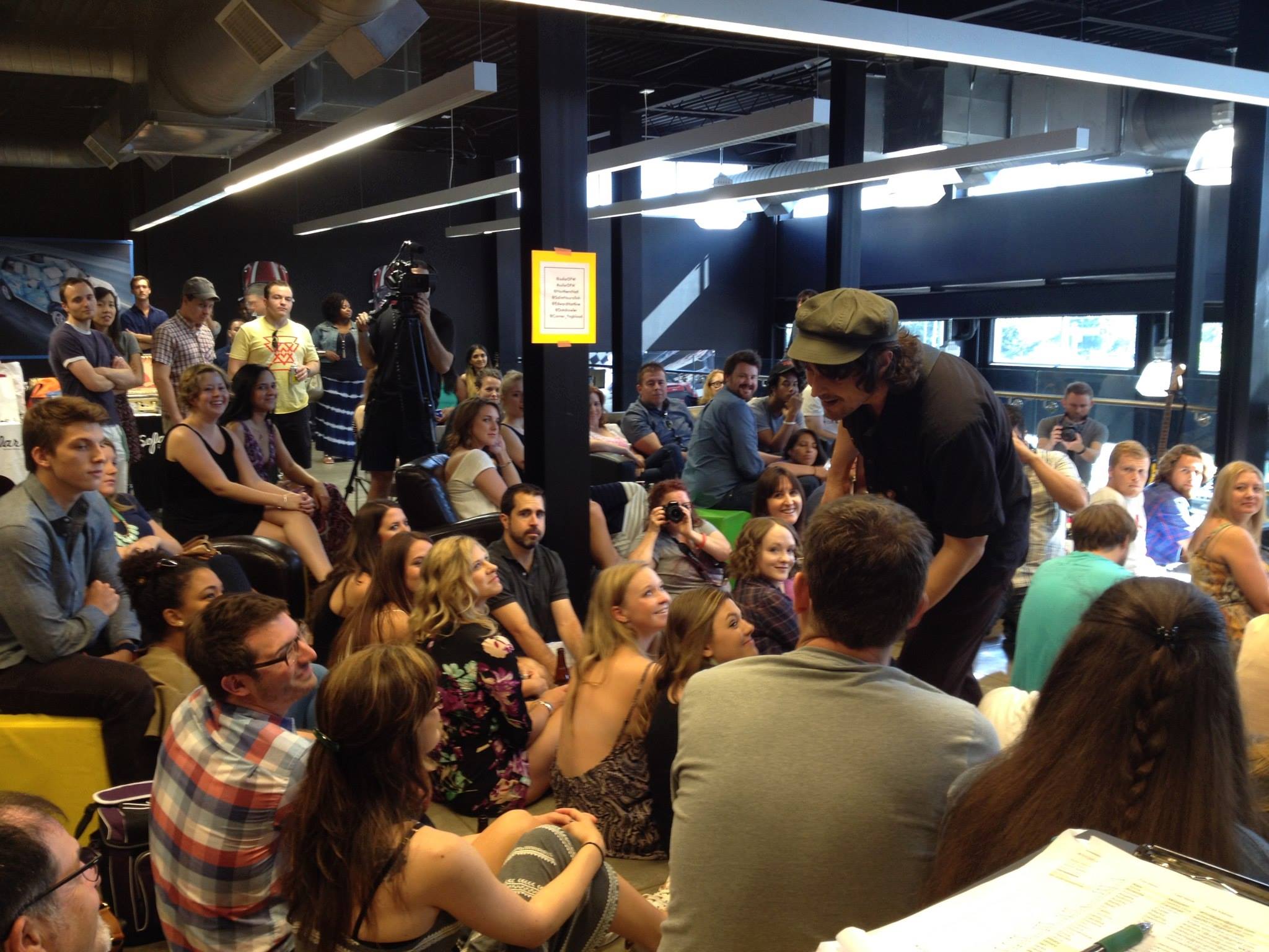 Following Northern National was singer-songwriter-producer Salim Nourallah, whose quirky, unplugged act was, in a word, delightful. An award-winning songwriter and producer, Salim performed like a pro, one minute dancing and weaving throughout the crowd to his deftly written “Warriors of Love” and the other, cooly corralling the audience into a quiet sing-a-long of “My Job Is Leaving,” a tune he had played for an audience only once before.