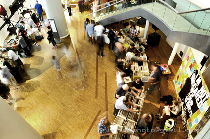Our hosts at Artisphere in Rosslyn, Virginia well timed our return to their environs with the soundscape installation entitled Fermata, which saw many a crate digger taking a breather amidst cozy bean bag chairs and a literal wall of sound as accompaniment.