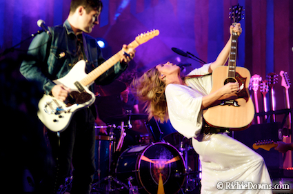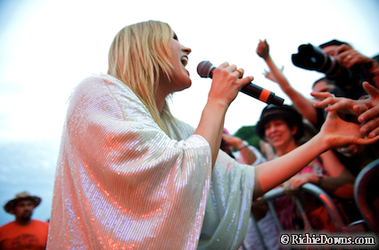 By the time headliners Grace Potter and the Nocturnals took the main stage at 8 pm sharp, the festival’s atmosphere was less family picnic, more rock ’n’ roll. Clad in a shimmering white Statue of Liberty-esque robe, Grace Potter opened, appropriately, with “Hot Summer Night.” The ensuing setlist left nothing for want, with hits like “Medicine’ and “Goodbye Kiss,” slow jams “Timekeeper” and “Apologies,” and covers of Bill Withers and Hank Williams (“Grandma’s Hands” and “Devil’s Train,” respectively). In her typical rockstar style, Grace alternated between keys, some serious guitar, wild dance moves, and general bopping across the stage with boundless energy. For what must have been a record-setting five-song encore (FIVE), the band refused to miss a beat: Grace took the stage solo for “Stars” and an extra soulful “Nothing but the Water,” and the band came back for a crowd-pleasing cover of “American Girl” and Grace’s own anthem, “Paris (Ooh La La).”