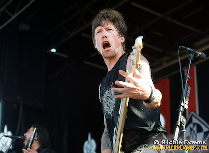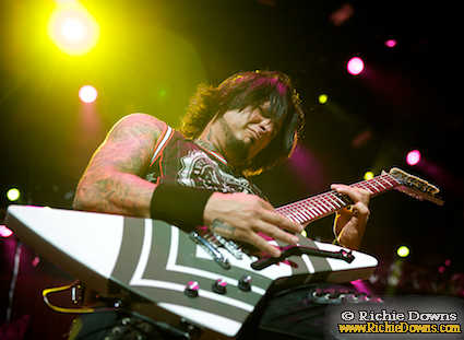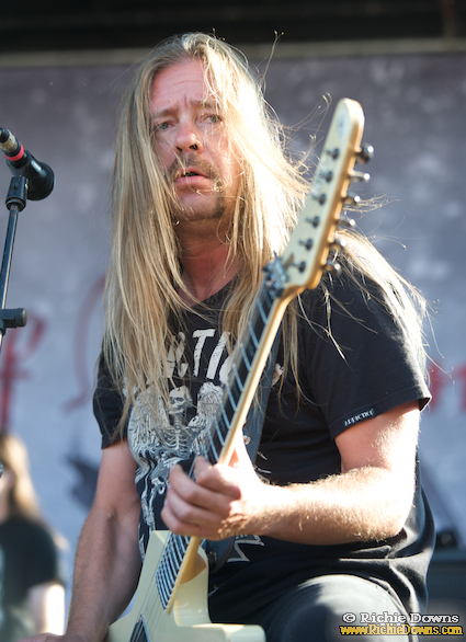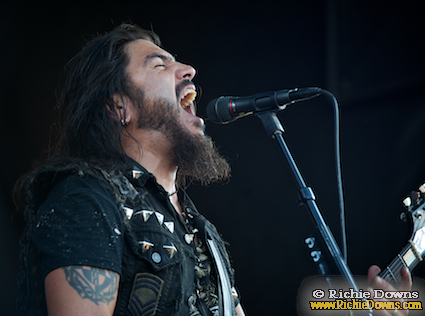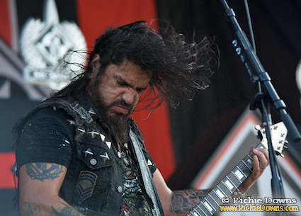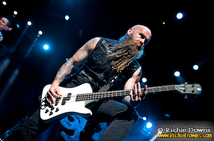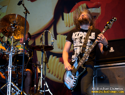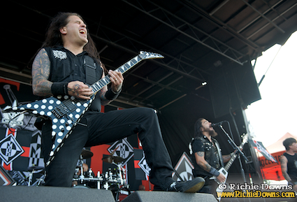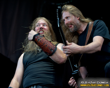 While the afternoon gave way for the tour’s supporting acts to fill the hot venue grounds with their musical offerings, bands such as Machine Head, Bucher Babies, Huntress, Job for a Cowboy, and the Finnish metal band Children of Bodom, the nighttime is when things got a little bigger and a lot louder. Amon Amarth screamed convincingly enough to prove to me that they are true Viking warriors, while Mastodon and Five Finger Death Punch offered a more melodic approach to the metal barrage of sound.