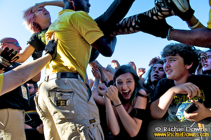 The two larger stages on the grounds were The Jagermeister Stage and The Musicians Institute Stage. These stages were set up up side-by-side on one of the most spacious parts of the Pavilion grounds. Large crowds gathered in front of both stages to form one immense crowd. The coolest thing about this was that the minute one band stopped playing, the next band was ready to go on the adjacent stage. This allowed for almost no down time and helped the crowd from having to walk from one stage to another like most outdoor festivals.