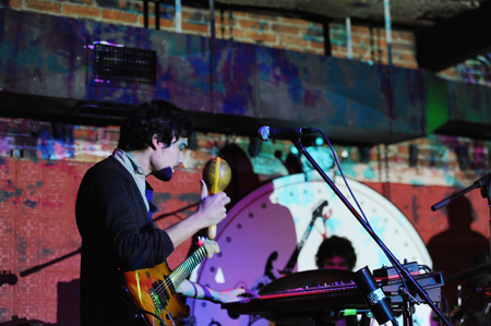 Grayson: In the Fall of 2010, Jay and I got involved in interactive media—a good friend of ours was working with a program called Max MSP, a program-building program that allows you to control a range of different devices… video, audio… even robots. The stuff he was doing visually was amazing, but it was really complicated. We thought we might be able to apply that to something that anyone could use with their fingertips. It took a couple of years, but now it’s actually alive! Our good friend Leia is doing the live visual work for us on tour.