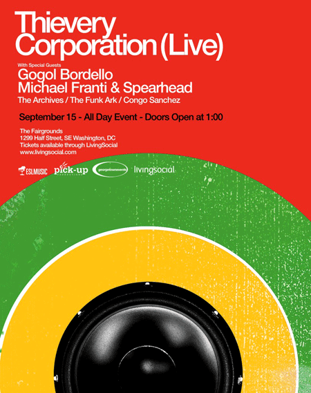 This Saturday, September 15th, you’ll get a chance to hear him perform with Gogol Bordello, Michael Franti with Spearhead, Thievery Corporation and others at the Fairgrounds, near Nationals Park.