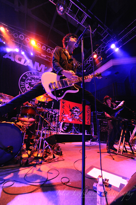 Ant opened with “Marrying the Gunner’s Daughter,” one of six songs he performed off his latest LP. “Gunner’s Daughter” was good, what with its uptemo beat and hard rock guitars, and Ant even did a little goofy, club-footed dancing; he could be the worst dancer since Bruce Springsteen, but you have to admire him for not caring. New one “Hard Men Tough Blokes” was also excellent, really fast and with a good chorus, in which the guitarists echoed Ant’s “Hard men!” and “Tough blokes!” “Shrink,” a veritable noise-fest off the new LP, was disappointingly listless and noise-free live, although Ant let out a few great screams and generally reminded me of a bile-free John Lydon. Newbie “Vince Taylor,” a paean to the late frontman of The Playboys, was disappointingly nondescript and featured a limping melody, although the crowd danced to it so who knows. “Stay in the Game” was similarly disappointing, what with its sickly guitar solo and Ant staggering about the stage. Finally the band performed “Cool Zombie,” which was excellent, what with its nice slide guitar, propulsive and catchy melody, and Ant’s forceful vocals.
