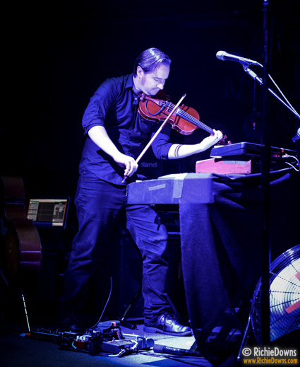 Joseph Author was the night’a opening act. Armed with a Fender Twin Reverb amp, a pedal board, and two vintage telecasters (complete with doodles of his artwork drawn on them), Joseph took the stage and served up a multi-instrumental blend of sounds and effects via his looping effects station and harmonica. He even took the time to complete a nice little painting in front of the audience.