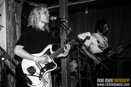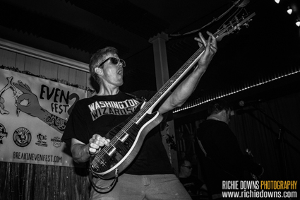 Breakin’ Even is the brainchild of the band American Television (who were slated for Saturday). But they curated the festival with bands they knew, worked with or otherwise liked. So they got the longtime trio Dot Dash into the mix, with straight ahead and smart driving rock led by Terry Banks. The trio is also a kind of equipment showcase, with Bennett playing a baby blue Vox teardrop guitar and bassist Hunter Bennett rocking a rare, super-heavy 8-string electric bass that tended to dominate the sound. Drummer Danny Ingram managed with the drum set the first three bands were sharing. Named after a Wire song, Dot Dash, which is next opening for Richard Lloyd at the Black Cat June 1, had its last album—its fifth—released by an outfit in Ottawa.