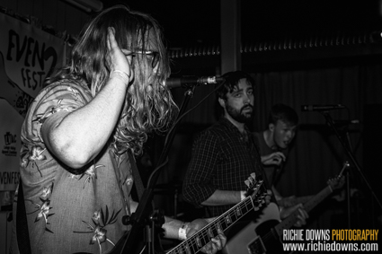 What would have been a fest started by two female-led bands instead led to a very different sound from the Baltimore band Dead End Lane. Lead singer Erin Demise is taking time from the band and won’t be back until the fall, so it fell to Mitch Nelson of the Gaithersburg band Brace Face to fill in. Demise’s vocals are usually aggressive, but Nelson’s aggro-rock was way over the top and the whole band in black sleeveless Ts was a little more bro-tastic than Dead End Lane may have ever intended.
