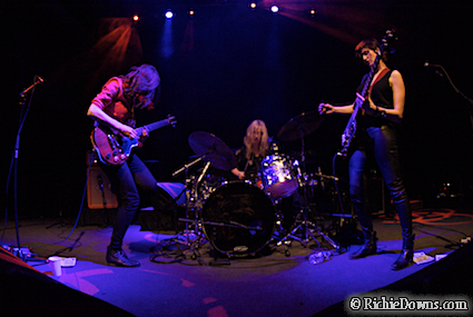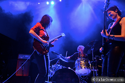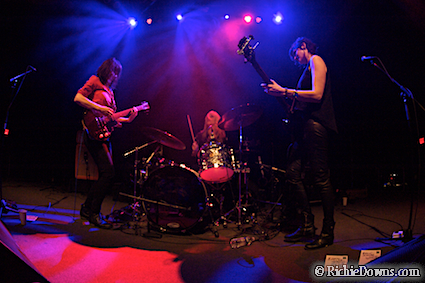 The night started out with DC-based female trio Ex-Hex, the latest undertaking of Mary Timony, formerly of Helium. Mary, along with bassist Betsy Wright and drummer Laura Harris has found a sweet spot of stripped down, real, and raw rock. Harris’ beat was tight, and Wright’s bass sound was huge, almost at the forefront at times, making for a potent rhythm section. Timony’s vocals were smooth and heartfelt, and unfortunately lost a bit in the mix early in their set. After a pleasing cover of Johnny Thunders’ “You Can’t Put Your Arms Around a Memory,” the tempo and power of the songs picked up a bit, and the rapidly filling room returned the surge of energy from the stage.