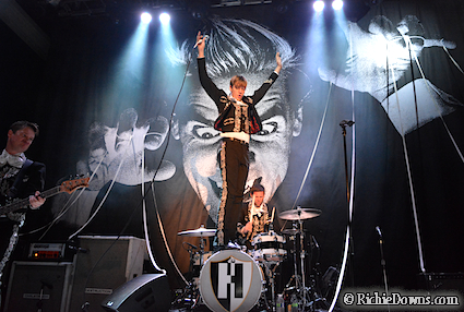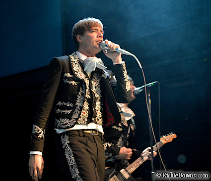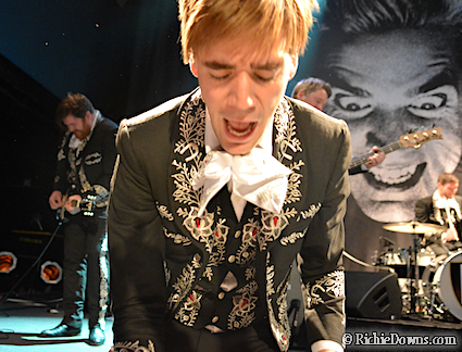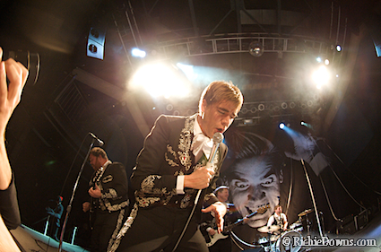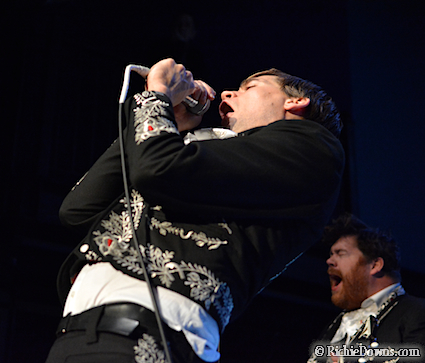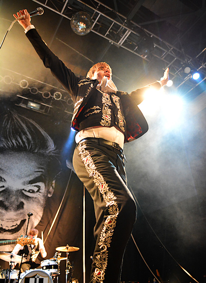 Playing seven songs from 2012’s Lex Hives, and interspersed with older songs like “Walk Idiot Walk,” “Hate to Say I Told You So,” and “Die, All Right!” the raucous set was tempered with the genuine yet hilarious stage banter from Almqvist. Before going into “1,000 Answers,” Howlin’ Pelle asked if anyone in the crowd had any questions for him. An eager fan in the front responded with an enthusiastic “I love you!!” to which he responded, “My dear, thank you, but that is a statement, not a question.” Jumping from the top of the drums, and strutting with a swagger like Jagger, Pelle’s stage presence and interaction with both the crowd and with guitarists Nicholaus Arson and Vigilante Carlstroem was something to behold.