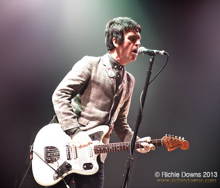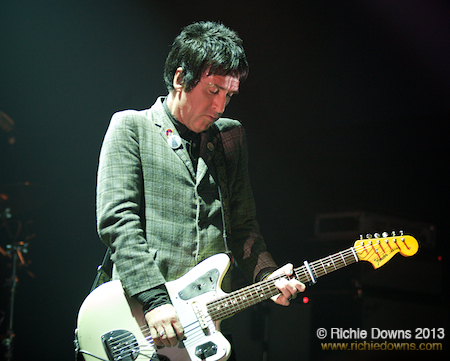 As for the originals, Marr opened the show with “Right Things Right,” whose opening reminded me of The Who, but which soon morphed into a midtempo rocker with a cool chorus and a very effects-laden guitar solo by Marr. The excellent “Upstarts” was great musically but marred by Marr’s weak vocals. “Sun and Moon” was a speedy guitar rave-up driven by a really fuzzed-out bass, during which Marr crouched to play a spectacular solo, while the great “Lockdown”–probably my evening’s favorite, along with “New Town Velocity” and “How Soon Is Now?”–was a powerful uptempo number with a great chorus and strong vocals by Marr.