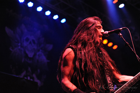 As they hit the stage playing “The Ballad of Leonard and Charles,” the sheer force of the music was like heavy artillery fire directed at the crowd, and they responded in kind, with an even bigger pit and ample crowdsurfing. Imposing vocalist Rob Dukes led the charge, and guitarist Gary Holt (currently dividing his time between Exodus and Slayer) fed the crowd more of what they wanted, mixing more recent material like “Iconoclasm” and “War is my Shepherd” with older songs like “Fabulous Disaster” and the thrash metal classic “Bonded by Blood,” when they were joined on stage by Holy Grail singer James Paul Luna to help sing a verse.